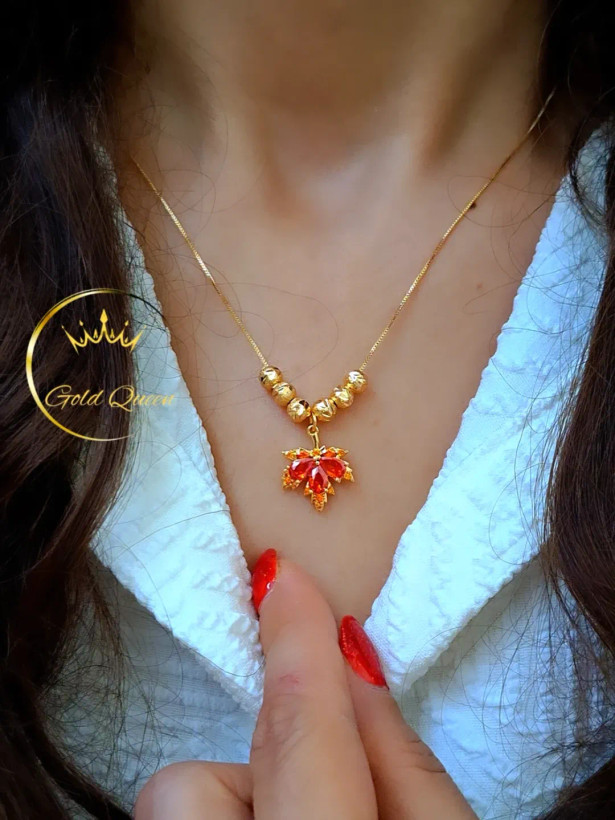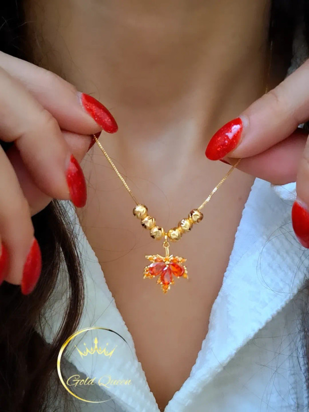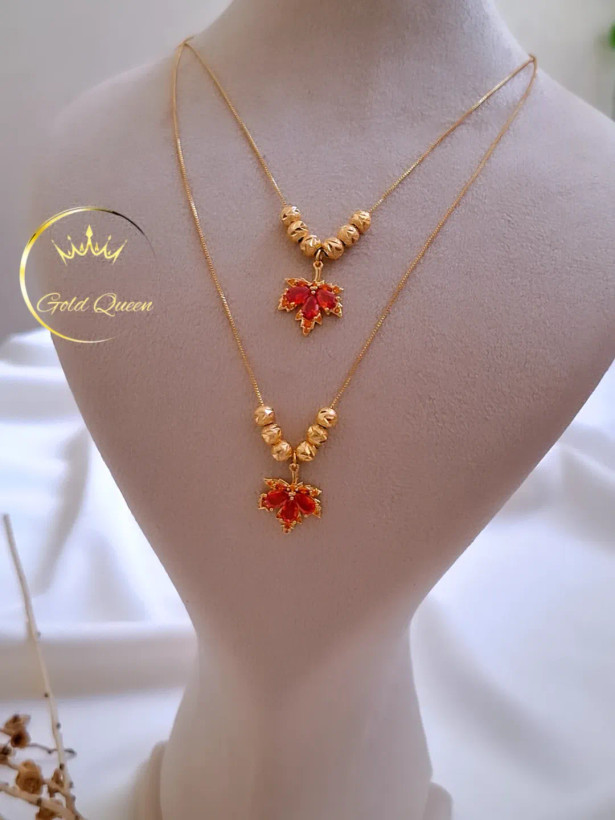 گردنبند برگ جواهری آلبرنادو دارای نگینهای طرح طلا و بسیار زیباست، تراش و درخشش جواهرا عالیتر از تصوره.روکش طلا 18k داره بدون حساسیته و ثبات رنگ عالی داره.