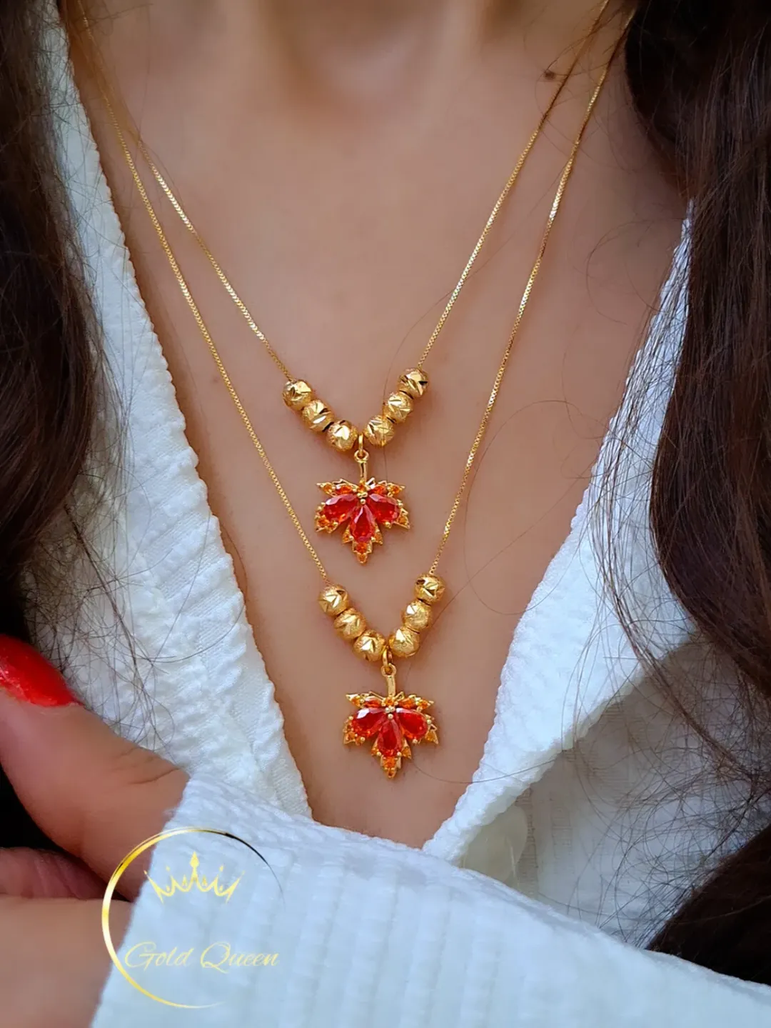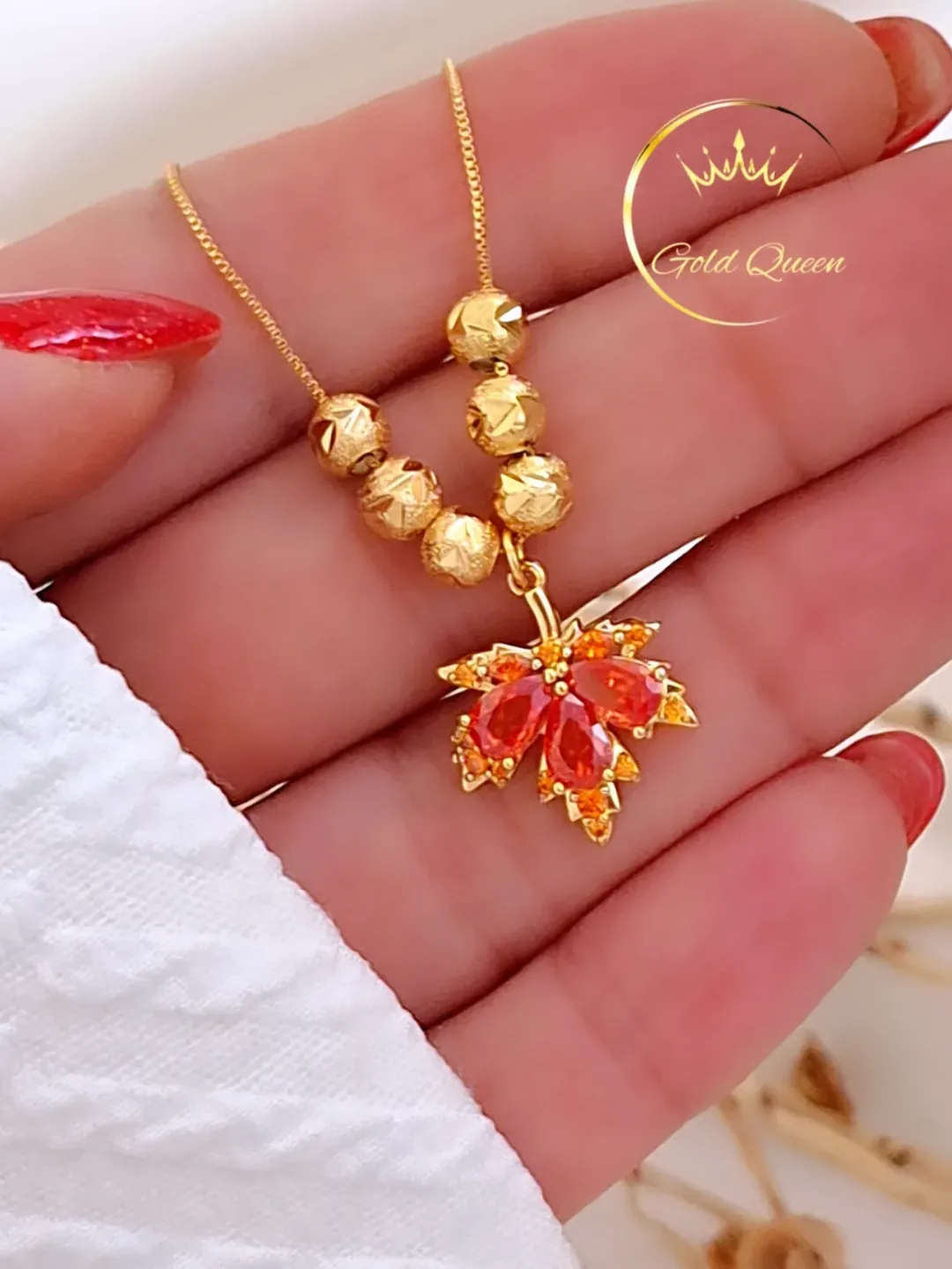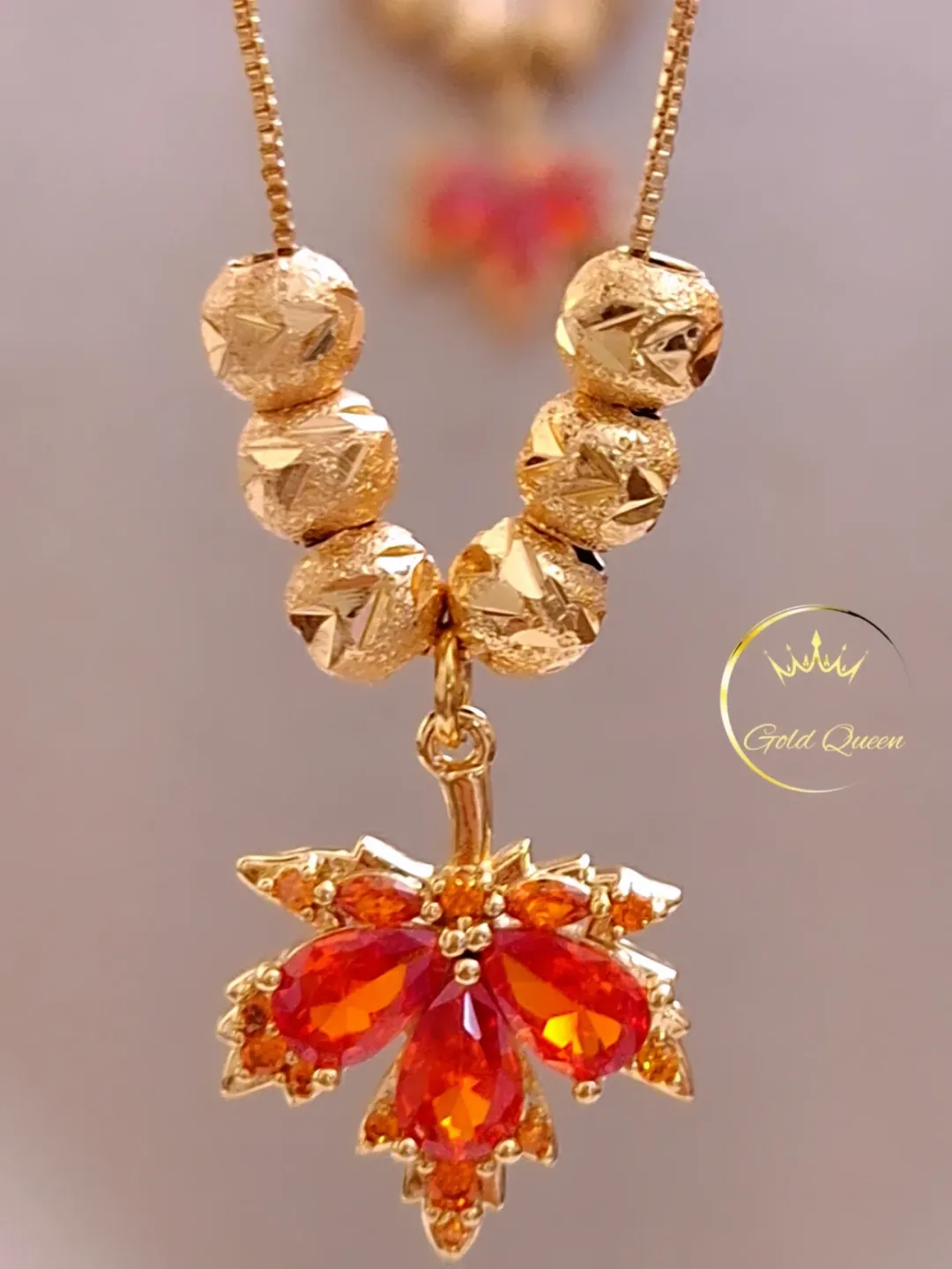 گردنبند برگ جواهری آلبرنادو دارای نگینهای طرح طلا و بسیار زیباست، تراش و درخشش جواهرا عالیتر از تصوره.روکش طلا 18k داره بدون حساسیته و ثبات رنگ عالی داره.