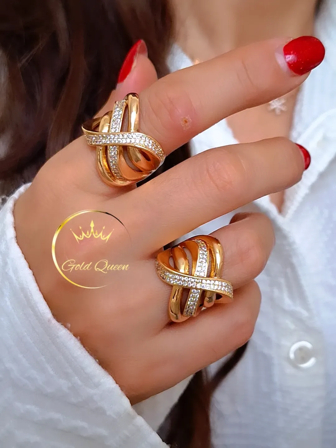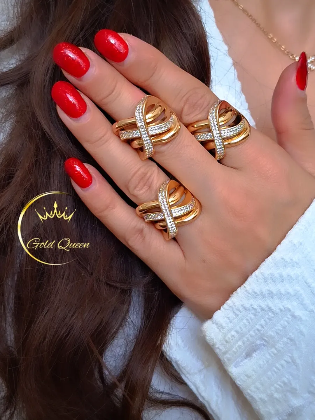انگشتر چند لاین مورب جواهری ژوپینگ کد 434
