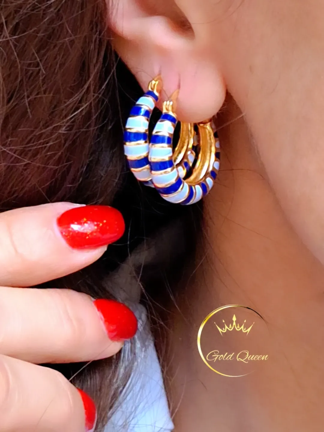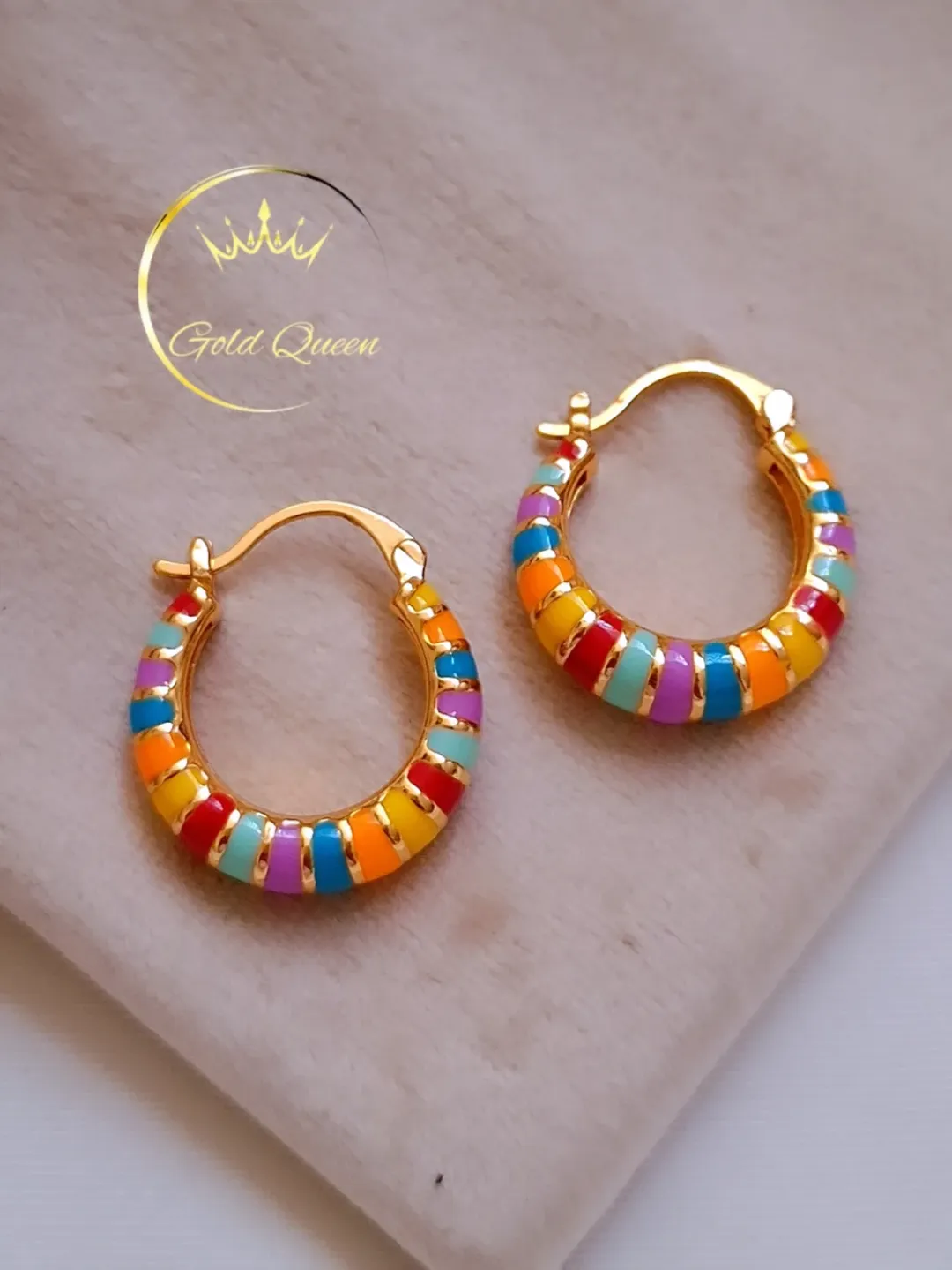 گوشواره های خوشگل و باکیفیتی با روکش طلا 14k و آبکاری عالی. ثبات رنگ عالی و مناسب برای استایل های خاص. کیفیت میناکاری ها عالیه.