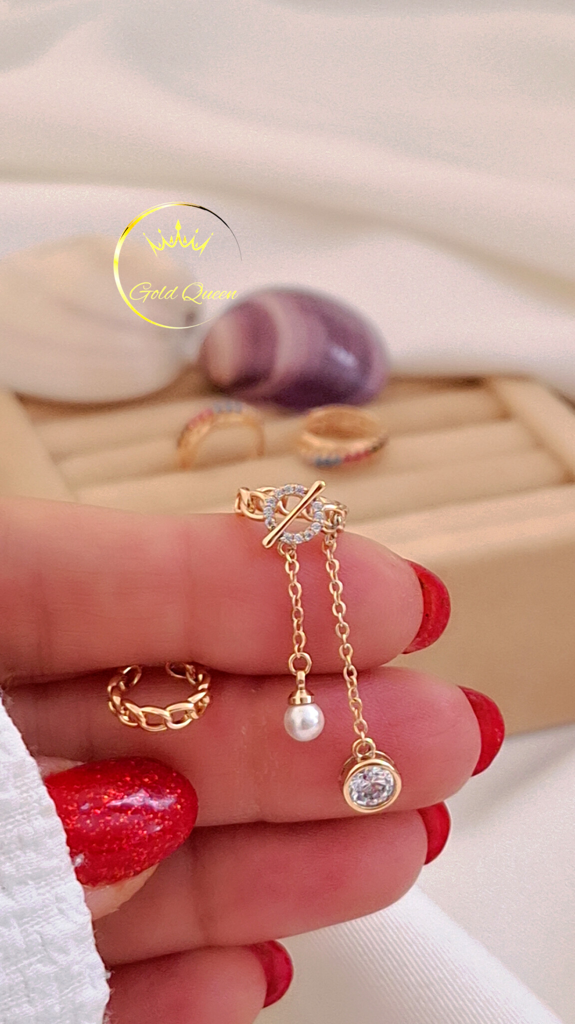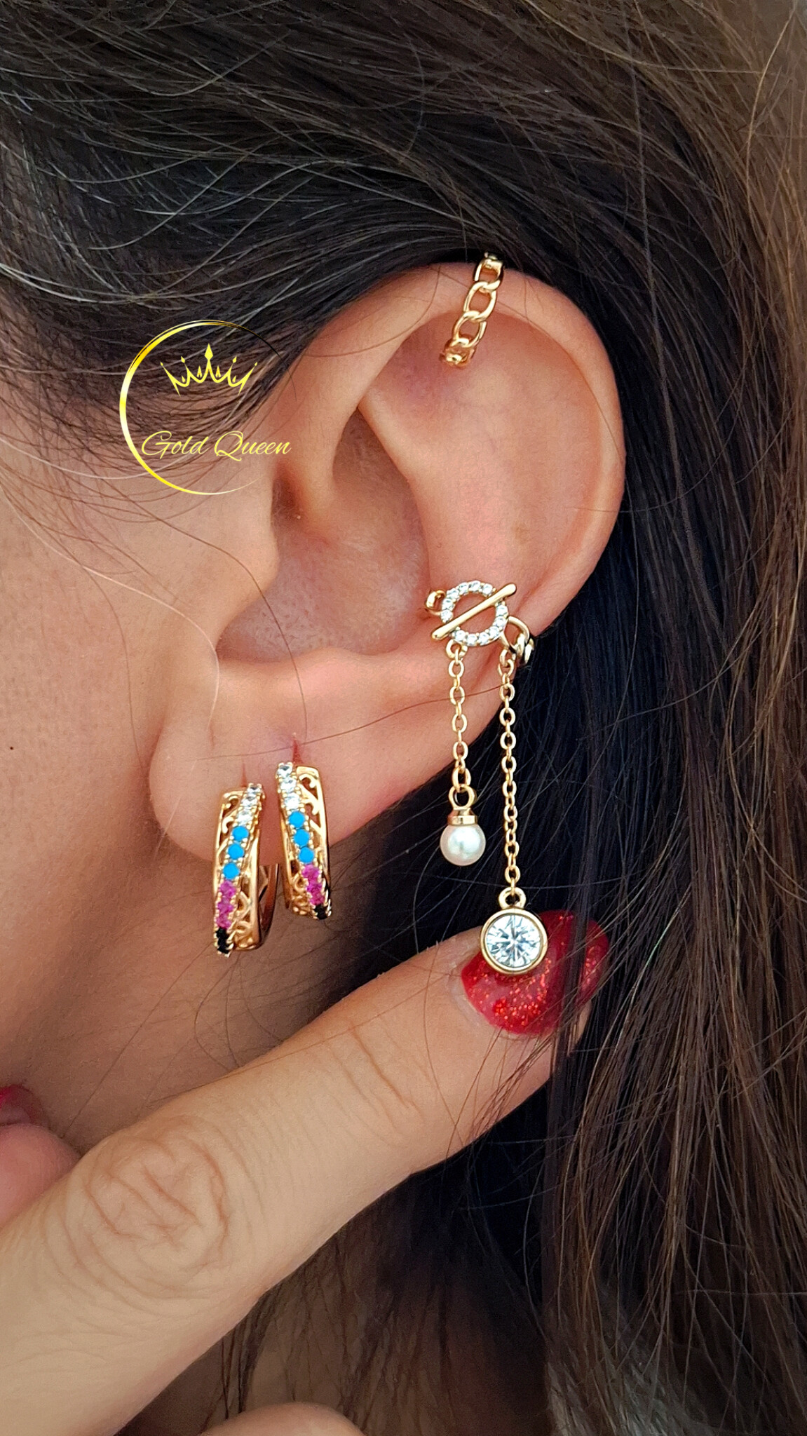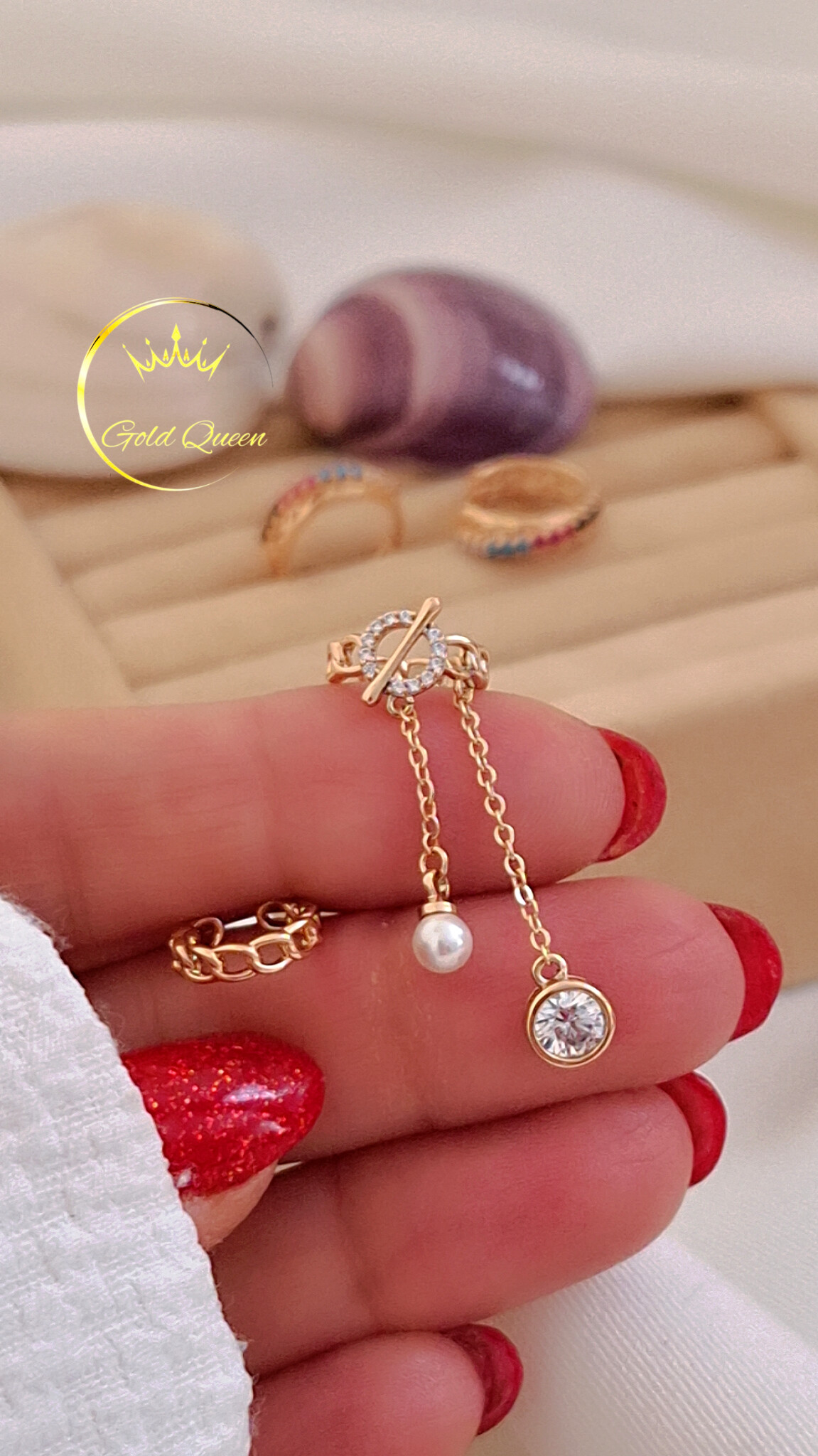 تعداد آویزها: دارای دو آویز، یکی جواهری، یکی مرواریدی